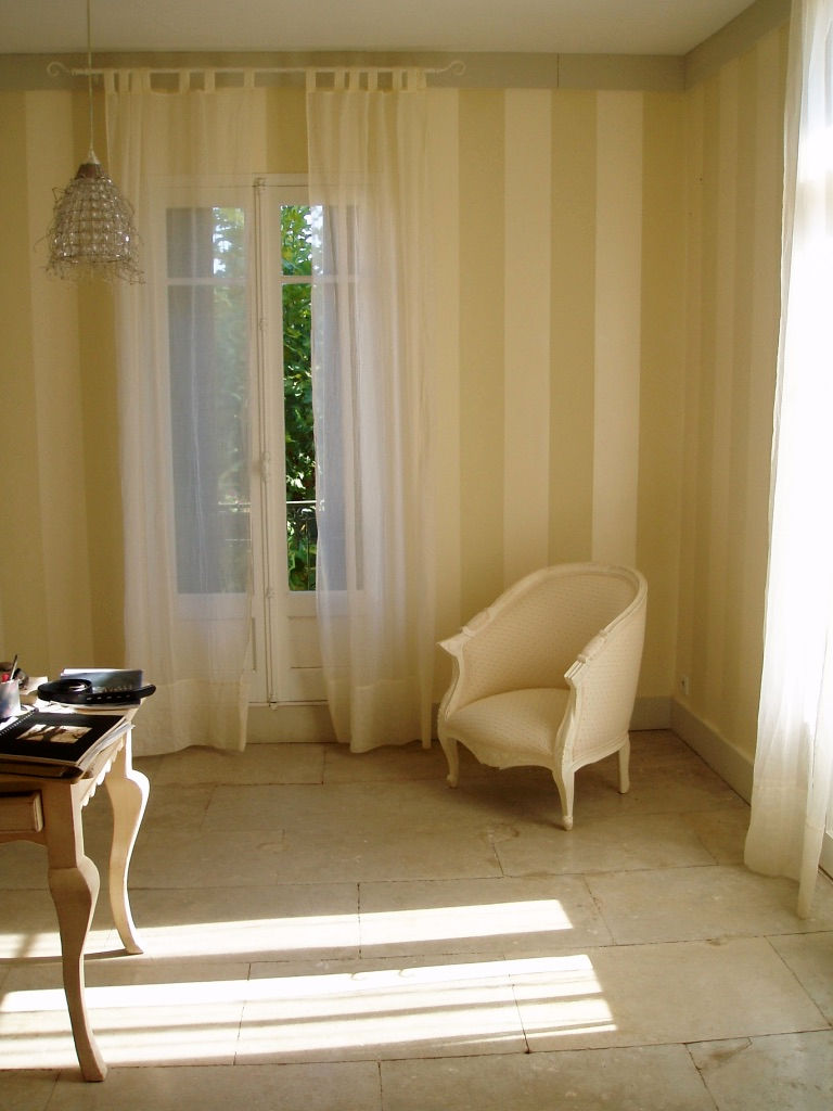 Cette bastide, à vocation viticole, a fait l'objet d'une rénovation complète. J'ai cherché à conserver un esprit campagne et chic en mettant en valeur les beaux matériaux qui se trouvaient dans la maison depuis son origine